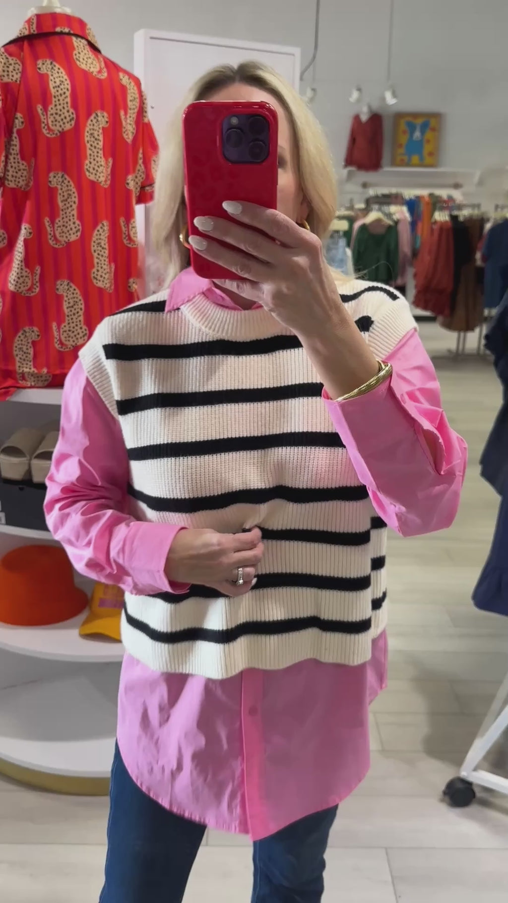 This classic collared shirt is your new go-to top. Its versatile design allows for easy styling, while the boxy and oversized silhouette adds a modern touch. Plus, the front pouch pocket adds convenience and classic collar detail adds a touch of sophistication. Time to make a statement (and be comfy too)!