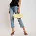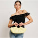 Crafted for the style-savvy woman, its versatile design accommodates your essentials while exuding contemporary elegance. The eye-catching metallic handles add a touch of glamour, making it a statement piece for any occasion.