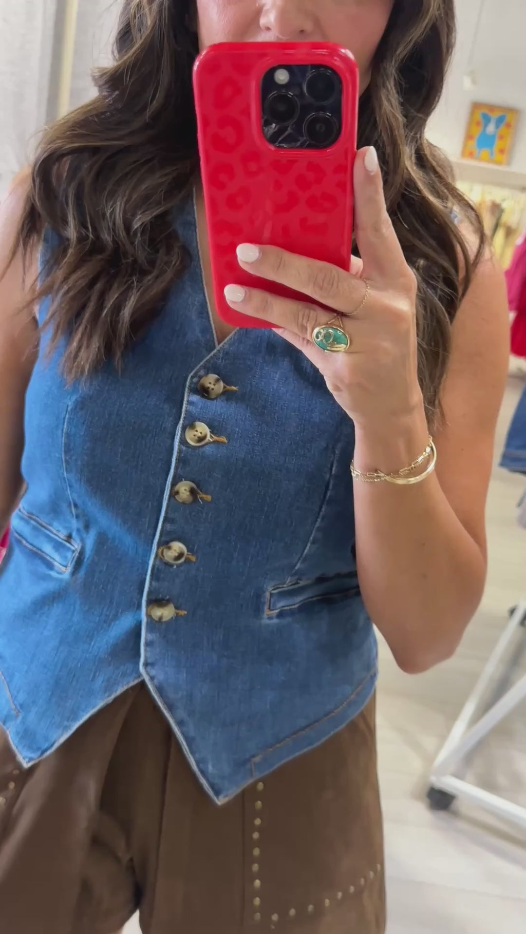 Bring some serious style buzz with the All The Buzz Vest! This dark denim vest features a crisp button-front design that adds an easy-going edge to any outfit. Perfect for layering, it keeps your look cool without trying too hard. Whether you’re dressing it up or down, this vest is ready to become your go-to for instant attitude and effortless charm.