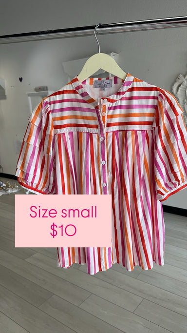 This blouse is a breath of fresh air with its colorful stripes and playful puff sleeves. With a button-down front, it's perfect for any occasion fr...