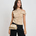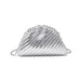 Elevate your evening attire with our sophisticated vegan leather clutch. Featuring a unique half-moon shape and a stylish woven design, this clutch is adorned with a detachable chain strap for versatile wear. Inside, the fabric-lined interior includes a zip pocket, making it as practical as it is chic.