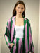Add a pop of color to your wardrobe with our Luxe Design Top. This playful pink and green striped satin button up will have you looking stylish and chic.